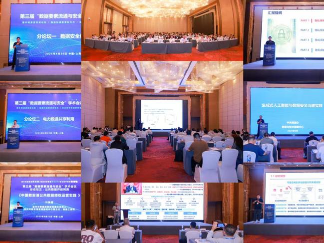 中国科学院信息工程研究所技术副总师李凤华做《数据要素流通利用与安全:挑战与对策》专题报告,介绍了数据共享与数据流通的本质差异、数据要素流通利用与安全的研究范畴、数据要素准则,着重剖析了数据确权、延伸使用控制、数据出域安全计算、安全交付、低开销监测等概念及学术内涵,并全面阐述了数据要素流通利用与安全的关键技术与发展趋势、技术解决方案。华东师范大学教授周傲英在报告《对数据及其价值的再认识与再实现》中讲到,把数据定义为第五生产要素,这是我国对于世界时代性的理论贡献,数据作为新动力带来新质生产力,促成生产力数量级的提升。中国电子技术标准化研究院副院长范科峰做《人工智能安全治理框架及标准化工作思考》专题报告,人工智能安全治理需遵循发展与安全并重、风险可控、多方协同原则,顶层设计强化标准引领,技术层以鲁棒性增强、隐私计算等技术应对风险,监管层完善全生命周期管理。上海市电力公司数字化工作部副主任奚增辉围绕《AI+光明大模型,打造智慧能源一站式管理引擎》分享针对电力系统多类型分散资源协同难、供需动态匹配精度高等形式与挑战,打造千亿级电力行业专业大模型-光明大模型,最终实现多类型分散资源常态化精准化调度。上海数据交易所副总经理李登高围绕《数据要素市场建设与新型交易模式探索》做报告,指出当前数据市场的四个观察;价值释放的四个环节;数据安全的四个思考和创新探索的四个体会,从模式突破、技术融合、生态联动、制度衔接,为市场发展提供实践路径。