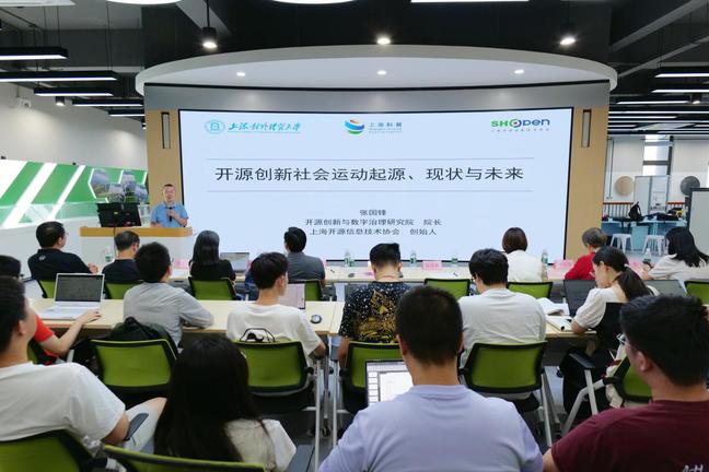 9月12日,学院博达讲坛邀请上海开源信息技术协会秘书长,上海对外经贸大学开源创新与数字治理研究院院长张国锋开展《开源创新社会运动历史、现状与未来》讲座。上海道客网络科技有限公司首席运营官张红兵、技术总监李越、技术专家石勇军、赵燕宁,人力资源总监张倩倩应邀参加。院常务副院长张传林、党委副书记齐永晓、教学秘书徐曼、计算机系主任叶文珺、《云原生&开源技术夏令营》课程负责人薛梅、团委书记卢珍共同出席本次博达讲坛。