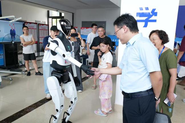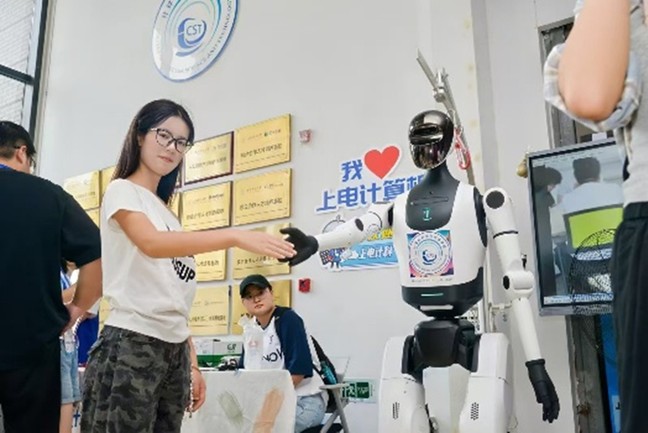 迎新现场开启“AI模式”,一位超炫酷的“新成员”,成为回头率最高的“志愿者”,该机器人可以完成握手、比心等互动动作,机器人化身“舞者”,拉满科技感;同时体验学生自主研发的VR眼镜,眼前“凤凰展翅欢迎2025级新生”的画面,现场纷纷互动体验,尽显学院专业特色与优势。