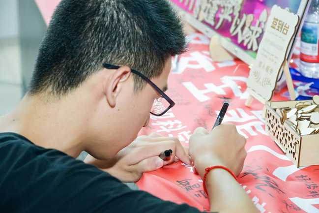 迎新正值网络安全宣传周期间,迎新现场设置签名横幅与网络安全宣传展板,新生驻足参观后,纷纷签名承诺共同筑牢网络安全防线,这也是学院新生第一课的重要。