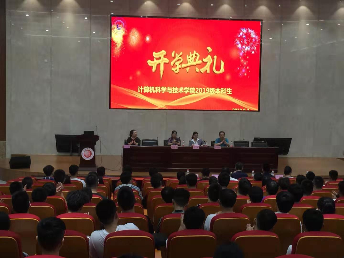 编写人生代码,书写无悔青春。为引导和帮助2019级本科新生尽快适应大学生活,树立新的奋斗目标,9月2日下午13:30,计算机科学与技术学院在学术楼117报告厅成功举行2019级新生开学典礼暨“院长第一课”,创新新生入学教育活动形式。计算机学院院长温蜜、副院长毕忠勤、党委副书记余南飞、新生班主任代表和新生辅导员集体亮相,与253名新生见面,活动由学院团委书记卢珍老师主持。
