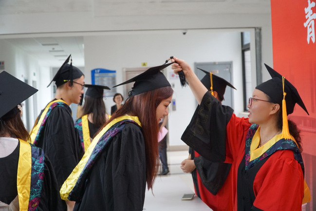 随后,导师代表为在场所有毕业生拨穗。拨过流苏的时刻,便是学子们完成学业的最佳见证,帽穗从右到左不过匆匆数秒,定格最美好的瞬间。