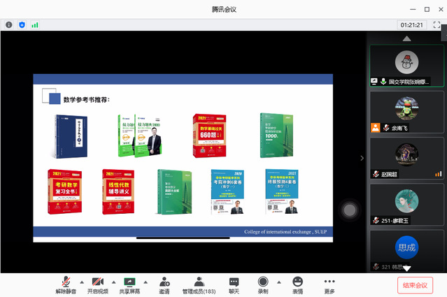 7月20日,旧版云顶国际yd222通过腾讯会议召开了2021届本科毕业生就业动员会暨考研交流会。院长温蜜、院党委副书记余南飞、副院长李晋国以及2021届全体本科生参加,会议由余南飞主持。