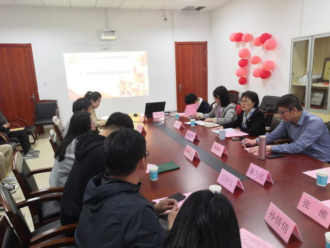 向身边榜样学习环节,教育部第二批全国党建工作样板党支部数理学院物理学科教工党支部副书记于文英以“弘扬专业特色,打造党建品牌”为主题,围绕“七个有力”及“党的一切工作到支部”鲜明导向,介绍支部如何扎实推进“三会一课”,提升支部组织力、凝聚力建设,同时党支部结合物理专业研究方向,积极探索培育学科特色项目等。