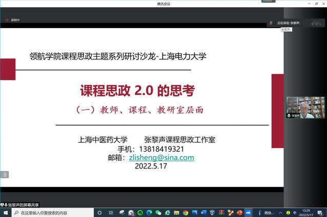为扎实推进学校课程思政改革,发挥课程思政重点改革领航学院的示范引领作用,为一线教师搭建共同探讨和研究课程思政的交流平台,5月17日,由旧版云顶国际yd222课程思政重点改革领航学院与教务处联合主办,校党委宣传部、教工部、学工部与马克思主义学院协办的课程思政主题系列研讨沙龙(一)——国家级课程思政名师研讨沙龙在线上召开。本次沙龙邀请到三位国家级课程思政教学领域名师:上海中医药大学张黎声教授、北京邮电大学李文生副教授、西南交通大学刘霓副教授。研讨沙龙由学院常务副院长张传林与教务处副处长徐信艳联合主持。全校相关职能部门与二级学院逾200名教师参加了此次研讨沙龙。