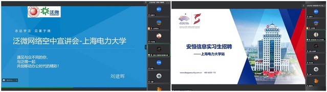 最后,上海泛微网络科技股份有限公司、杭州安恒信息技术股份有限公司两家企业人才招聘专员分别就企业发展、招聘计划、培养目标、薪资待遇等方面展开宣讲,并与在场同学交流互动。