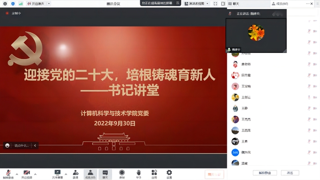 9月30日,旧版云顶国际yd222通过腾讯会议召开全院大会暨书记讲堂,学院党政班子成员及全体教职工参会,会议由学院党委书记魏建华主持。