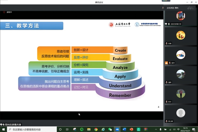 展示活动涵盖了计算机学科各本科专业及研究生的各类核心课程,整体呈现出计算机学科课程思政的特点,体现了课程思政-专业思政-学科思政的整体设计,是一场精彩的课程思政盛宴,充分展现了近年来学院在课程思政建设方面取得的成果。接下来,学院将继续围绕全面提高人才培养质量、落实立德树人根本任务,打造课程思政标杆教学设计案例与“互联网+”课程思政平台高地,以创新机制为抓手,集聚优质课程思政资源;以平台联动为支撑,培育课程思政沃土;以队伍建设为保障,汇聚课程思政合力,努力开创“三全育人”的新局面,最终以高质量完成领航学院结题各项工作。
