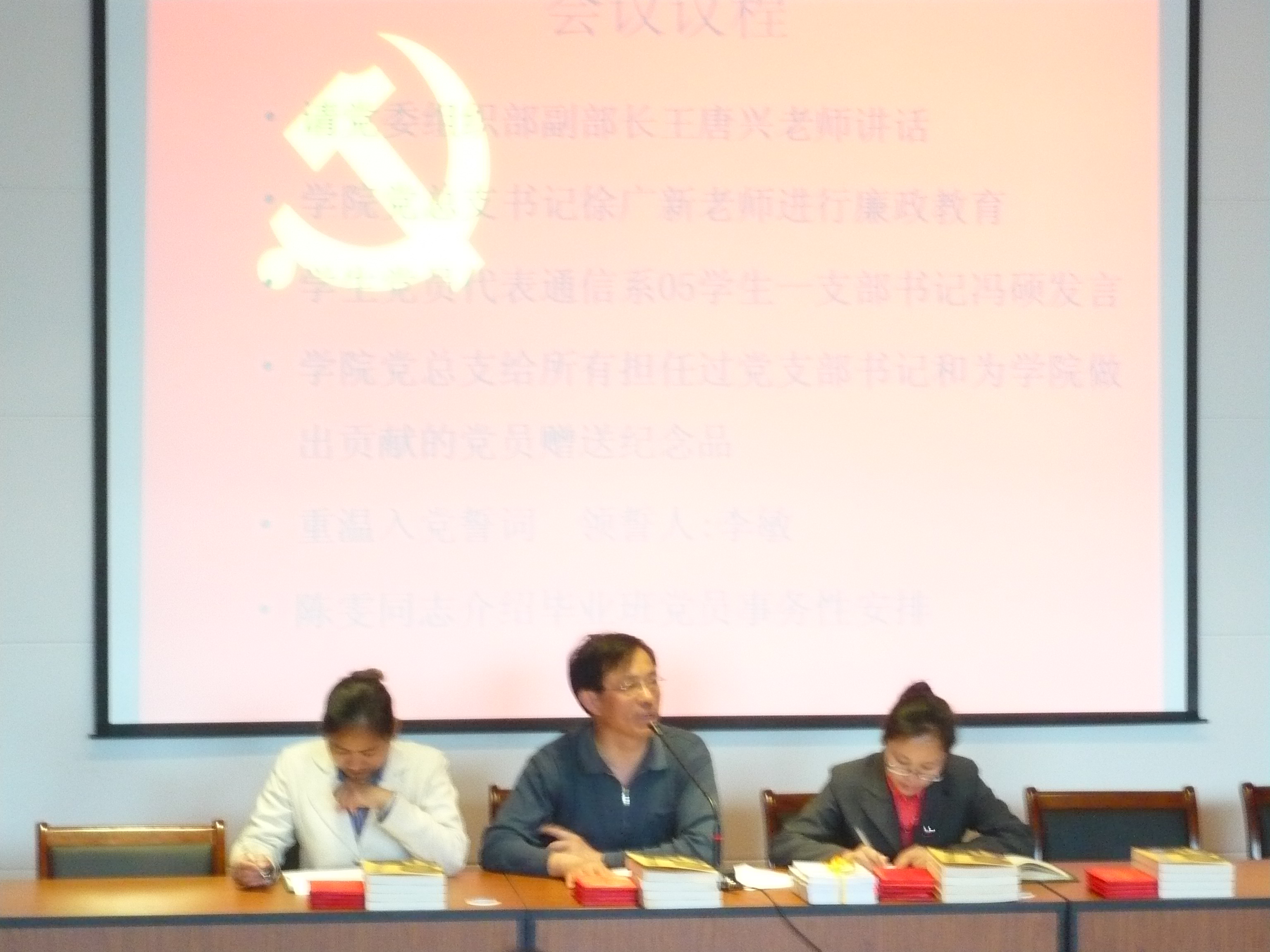 王唐兴老师结合学习实践科学发展观,强调学生党员要注重党员意识、党性意识,组织观念和纪律观念的培养,在走向社会后继续发挥党员先进模范作用。