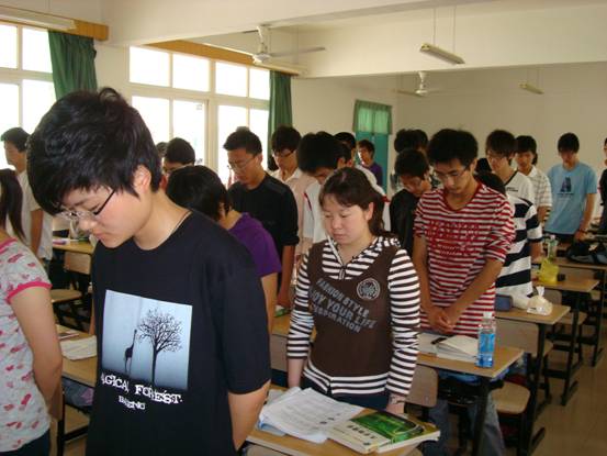 在5.12默哀仪式上,2008073班屏气凝神,庄严肃穆,用实际行动表达了对于逝者一路走好的深切祝福,同时为另一个灿烂的明天许下郑重的承诺。愿逝者安息,伤者痊愈,生者坚强!