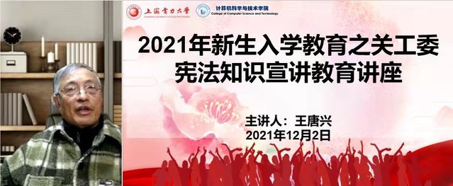 12月2日晚上18:30,上海电力大学关工委王唐兴老师应邀为旧版云顶国际yd222开展“学宪法,讲宪法”知识讲座。王唐兴通过线上分享对宪法内容进行了深入讲解,并通过互动提问形式,让学生们结合自身经历讲述身边的“宪法”。最后,参与讲座的同学们纷纷踊跃发言,现场气氛活跃。本次活动让2021级新生切实了解到与生活息息相关的法律常识,学会运用法律武器保护自己,进一步明确宪法是我国的根本大法,自觉提高尊崇宪法、学习宪法、遵守宪法、维护宪法权威的意识,激扬爱国情,笃行报国志。