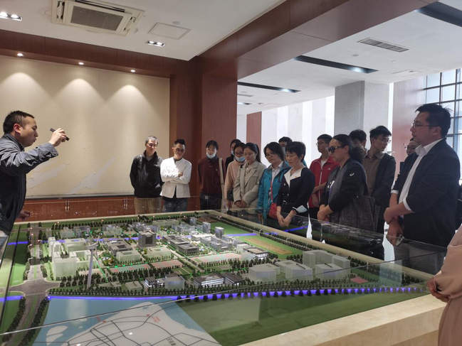 活动特邀上海电力大学临港新校区建设综合办公室杨涛老师讲解临港校区风光储一体化智能微电网项目,在学术楼沙盘处,杨老师结合立体模型介绍临港校区以“绿色、智能、低碳、节约、开放、融合”为特征,高起点、高标准的新能源微电网建设等相关内容。大家围绕前瞻性技术、示范性功能等积极互动、踊跃交流。