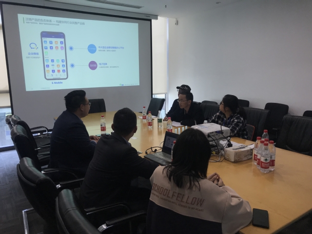 首先,上海泛微网络科技股份有限公司副总裁陈驰先生带领大家参观了公司的办公环境,讲解了泛微科技发展历程和企业文化,介绍了目前泛微所取得的成就和面临的机遇和挑战,并对学生发出邀请。随后,HR刘建辉向同学们做公司介绍,泛微一家专注于移动办公软件的企业,OA系统、电子签章、电子签名都是他们的核心内容,介绍了企业对高校毕业生的招聘计划,并诚邀同学参加。最后,毕忠勤、余南飞、李晋国分别与泛微区域总监闻丰和EBU事业部总经理孟连磊就教学、就业以及科研进行共建洽谈,初步达成共建意向。