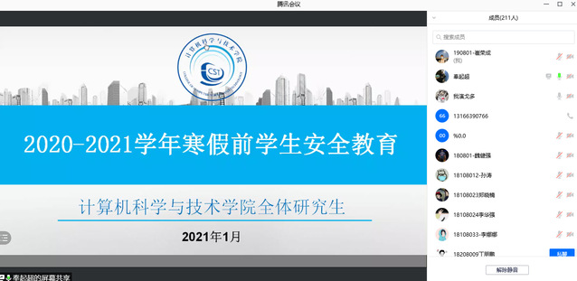 为进一步做好寒假期间的常态化疫情防控工作,提高学生在假期的安全防范意识,增强自我保护能力,确保学生度过“平安、充实、快乐”的假期,学院各年级辅导员通过线下、线上方式向全院本科生、研究生开展了寒假前安全教育。