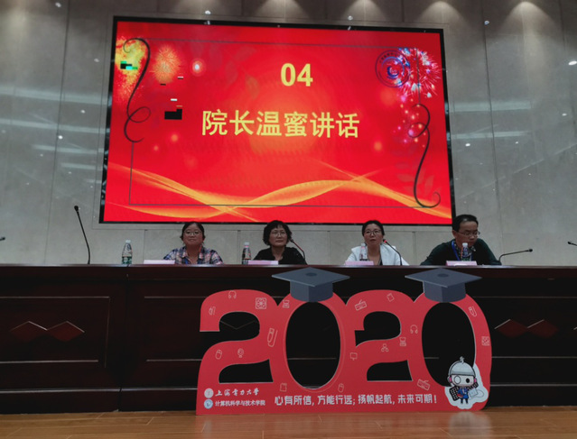 助现青春梦想,引领辉煌之路。为引导和帮助2020级本科新生尽快适应大学生活,树立新的人生理想与目标,9月22日13:00,学院2020级本科新生开学典礼在临港校区学术楼117报告厅隆重举行。典礼由学院党委副书记余南飞主持,院党委书记魏建华、院长温蜜、副院长毕忠勤、办公室主任诸葛琼、实验中心老师于晓青、新生班主任代表徐曼、新生辅导员及2020级全体本科生出席了此次会议。