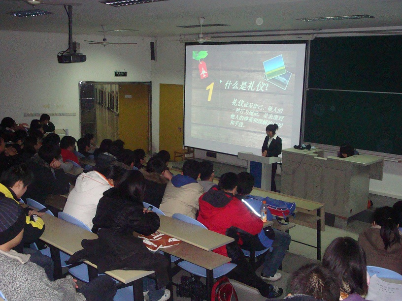 为增强大家对个人仪表及礼仪的认识,以此帮助大家做一个更加优秀的世博会志愿者,12月10日晚7点整,在南4121计信学院开展了迎世博文明礼仪讲座, 我院团总支书记成勇老师也出席了本次活动。