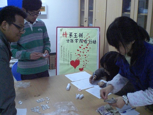 为支援广大玉树受灾同胞,近日我院在学院团学办公室举行了为青海玉树赈灾募捐,两天时间各团支部捐集善款6853元,募集的捐款将通过慈善机构转交给玉树灾区,为重建玉树献出一份微薄之力。通过此次活动,增强了同学们的民族凝聚力,也对同学们进行了一次全方面的教育,让同学们在灾难中学会珍惜,学会爱国,学会感恩,懂得责任!