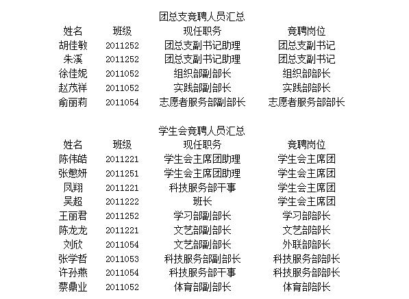 【信息通告】2013年旧版云顶国际yd222团总支学生会竞聘名单公示