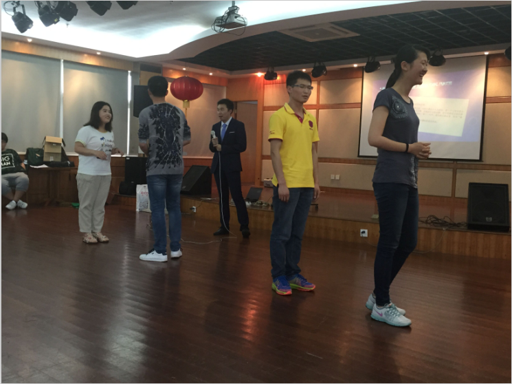 本活动按内容分为四个环节。“旋转三句半”,通过一组四位同学在四个不同箱子里寻找相关联的短句组成三句半来增加对三句半的了解。 “三句半之拷贝不走样”,除了原本“拷贝不走样”的基本规则外,还加入了“三句半”的元素,每个“三句半”中隐含的成语就是其中的答案,参赛者们通过夸张的肢体语言和绝妙的猜词技巧引得台下观众的阵阵掌声。“三句半之团团抱”,长句和半句分别代表一块钱和五毛钱,通过主持人间接报出钱数让拿着不同句牌的参赛者快速按照钱数多少“团团抱”,这需要快速的反应能力和参赛者的智慧。前三个部分结束后,2014222班四位同学的总积分获得第一名,2014052班和2014053班分别获得第二名和第三名。这三组同学参加了最后一各环节的终极较量――“最强能力者之撕名牌大战”。最后,2014053班的田敬孜同学成功夺得“最强能力者”的称号,获得终极大奖。赵铮老师为获奖班级和“最强能力者”颁发奖状和奖品。