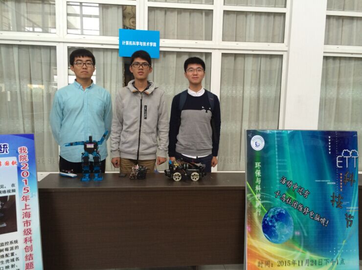 开幕式在校团委科服部部长陈超强总结科创工作开始。接着是校团委金斐老师致开幕词,并表彰了2014-2015学年上海电力学院科创竞赛获奖团队。在科技节会徽的投选活动中,参赛的选手个个信心满满,以饱满的热情介绍自己创作的缘由。最后,对能机学院杨由安同学,进行了科创达人访谈。我院布置的展台处有很多同学前来参观,同学们都很积极地听院科服部干事介绍自己展台上的机器,仔细地看他们对机器人的操作和演示,其中最夺人眼球的还是跳舞机器人,作为学院,机器人是我们学院展示的亮点,吸引了不少同学,而且大家都跃跃欲试,不仅体验到了科技的神奇,而且也增加自己的专业素养。