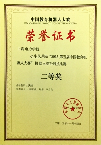 近日,由中国人工智能学会主办的第五届教育机器人大赛在东南大学举行,我校学院邱依强、李昌伟、刘伟三位同学组成的机器人实验室代表队在全国22支参赛队伍中脱颖而出,获得机器人擂台对抗赛二等奖佳绩。