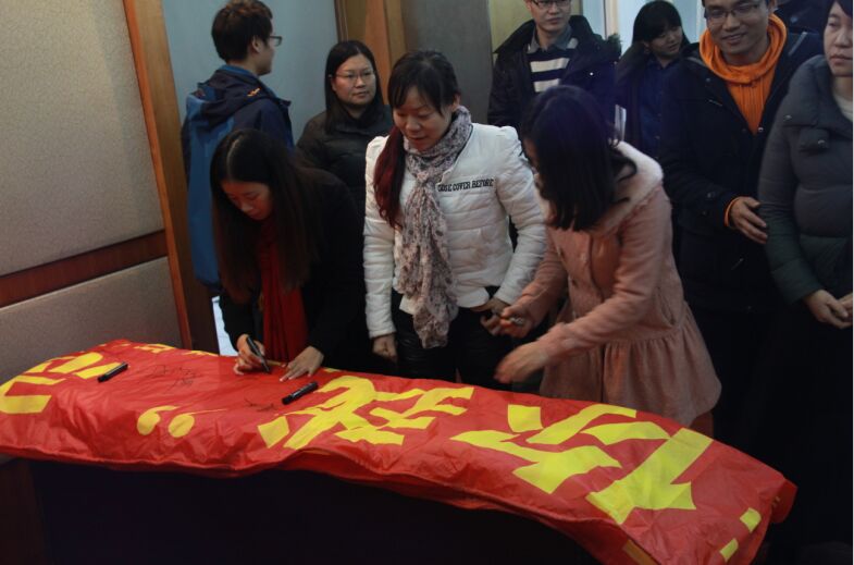 首先通过视频回顾了2015年团学辛勤耕耘的历程。院学生会副主席余元其同学从“思想引领、制度完善、学风建设、志愿弘扬、生活服务、课外活动”六大部分回顾总结了团学一年的工作经历,并从“过于急躁地创新、与支部联系不完全、团学各部门缺少沟通合作、对副部培养较慢、缺少学院特色活动”五个方面提出了团学工作的不足及改进措施。在观看了网络文明志愿者宣传视频后,老师和团学干部在网络文明宣传横幅上签名并且合影。随后,院党委书记费敏老师讲话,费老师首先表达了对团学成员付出的感谢,分享了自己对学生工作的理解,对团学干部从个人素质提升、自我发展提出了要求,希望将个人发展与团学发展联系起来,培养责任意识和担当意识,并表达了对团学工作的支持和祝福。接下来由团学各部长从部门职能、工作情况、工作计划等方面对部门工作进行总结汇报。最后赵铮老师对本次会议进行总结,从“做好传帮代作用、注重工作细节、突出亮点加强合作、实施考核评选”四个方面提出要求。