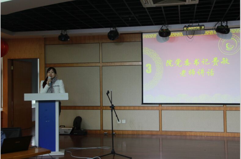 12月22日下午,我院2015年团学总结大会在文化活动中心三楼举行。院党委书记费敏老师,辅导员吴涵老师、刘佳老师、朱佳老师、刘志斌老师,兼职辅导员、分团委副书记贺佳以及团学各部门代表参加会议。本次会议由分团委书记赵铮老师主持。