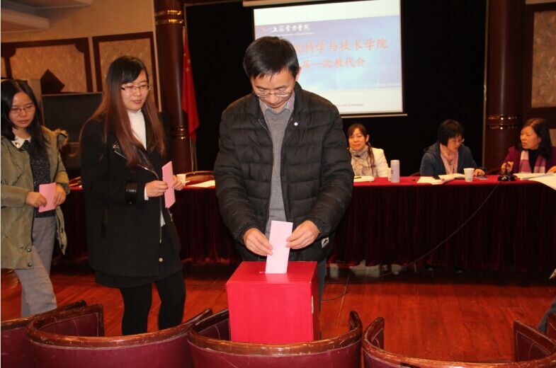 1月8日下午,我院二届一次教代会在杨浦校区二教演讲厅举行。校党委组织部李艳老师、学院党政领导、全体教职工与会,会议由校工会兼职副主席、学院分工会主席叶文�主持。