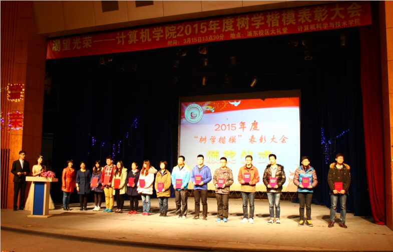 为表彰2015年度在学风建设、社会工作、素质拓展、科创活动、班团建设等方面表现积极、成绩优异的个人和集体,3月15日下午,我院“渴望光荣”树学楷模表彰大会在浦东校区大礼堂举行,学院党政领导班子、各系主任、辅导员与近800名学生参加大会。