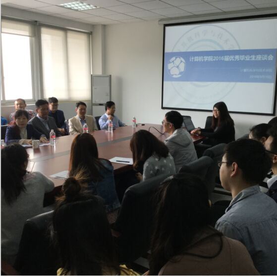 5月10日上午,我院在行政楼二楼会议室举行了2016届优秀毕业生座谈会。院长雷景生、院党委书记费敏、院党委副书记王佳丽、信息安全系主任周林、学院二支部书记刘大明、计算机系副主任张超、辅导员刘佳以及我院优秀毕业生代表参加了本次座谈会。