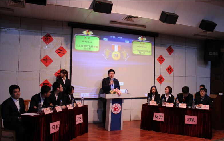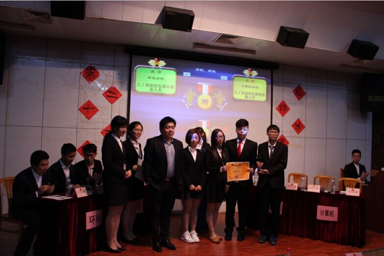 正方环化学院阐述“人工智能的发展将解放人类”观点,我院反方则表明“人工智能的发展将会禁锢人类”观点。我院以人工智能的发展会使人类对人工智能产生依赖性,和降低对问题探索构成的体验感为论据,逐层展开,层层深入,表明人工智能的发展会禁锢人类的发展。正方环化学院则用第一次工业革命解放了纺织工人等科技的突破进行防御,更摆出最新人工智能的杰作AlphaGo进行回击。双方辩手气场十足,口齿伶俐,正反双方你攻我守,辩词有力,每一位辩手反驳之后,场下掌声便会接连不断。最后,于兮老师综合评委意见对本次决赛做出了总结,肯定了双方的观点,之后又很现实的指出正反两方的细节问题。恭喜我院辩论队获此次校辩论赛冠军,同时也恭喜环化学院李国伟同学获得最佳辩手的称号。