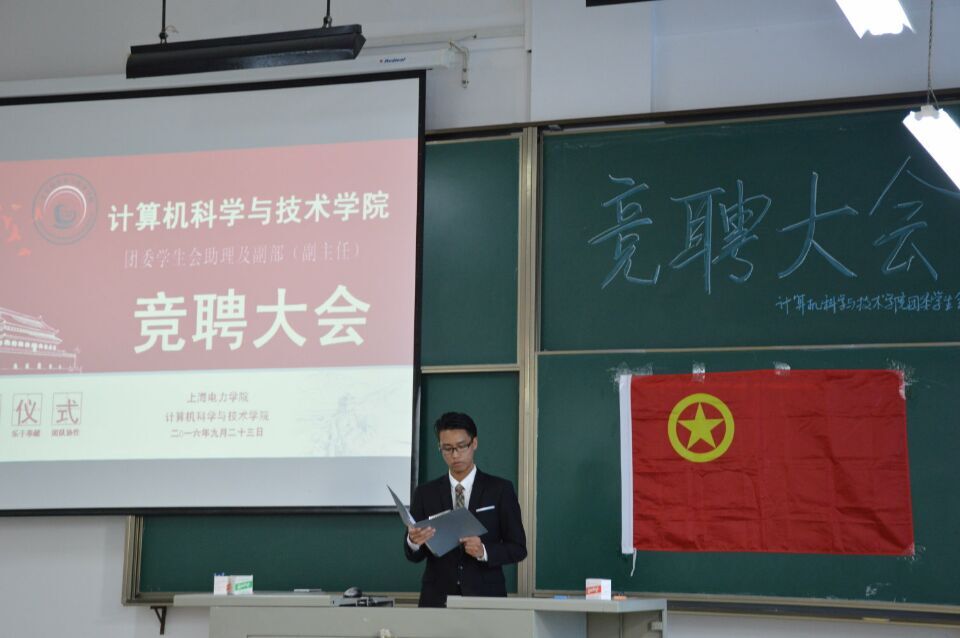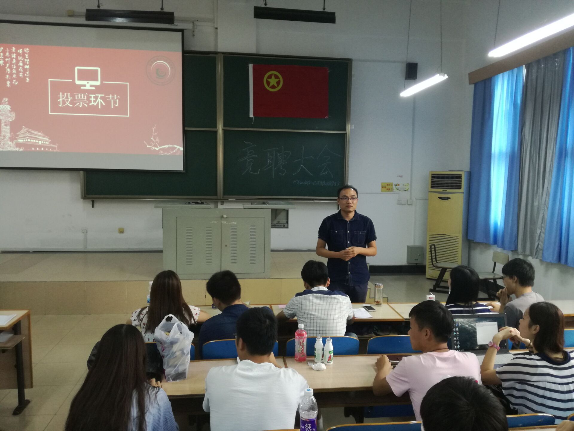 9月23日下午一点,我院分团委副书记、学生会主席团助理及副部竞聘大会在北2012A教室顺利举行。院团委书记赵铮、副书记姚俊杰、书记助理陆秋余、学生会主席刘圣地、副主席张明鑫、副主席韦靖攀以及院团委、学生会各部门部长与非毕业班主要班委参加活动。