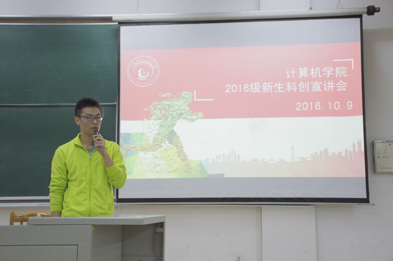 为更好宣传大学生科创、激发新生科创热情,10月9日下午,我院在北2101教室举办16级新生科创宣讲会。院教学秘书、大学生科创负责老师刘大明、院分团委书记赵铮、科服部部长许陈一、副部长黄念成以及全体16级新生参加活动。