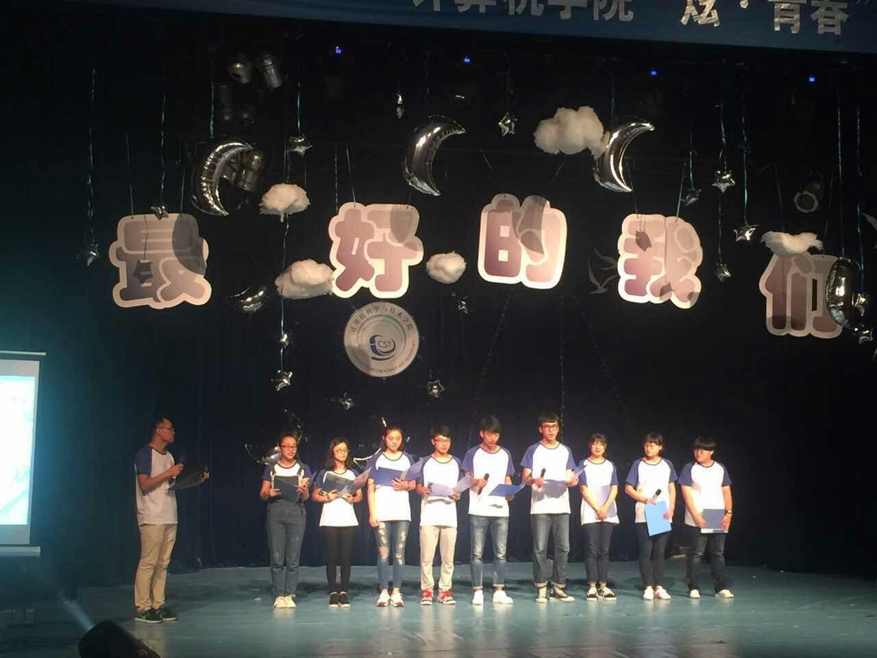 晚会伊始,IT时光舰驶入了起始站浅末年华,在麦田音乐社激情四溢的歌曲《DNA》中拉开序幕,带动了全场观众的气氛。春红未谢,尚有一整个火热的夏等着我们去拼搏,音乐声中新生憧憬着美好的未来,不免心潮澎湃。舞台剧《军训的那些事儿》勾起了刚经历军训的大一新生们的共鸣,想起了煌煌烈日下曾一同淌下的汗水。合唱《北京东路的日子》则将火热的氛围一转,激起新生们对往日校园生活的回忆,氤氲了他们的眼眶。接下来的诗朗诵《我心中的长征情》气氛略显庄严肃穆,让新生们回忆起革命烈士们的伟大,对现在的生活倍感珍惜。继而我们的IT舰进入了中转站今夕何夕,舞蹈《brea popping》,童话剧《白雪公主》,相声《我的大学生活》将现场拖入了火爆的气氛,无论是炫酷的街舞还是搞笑的童话剧亦或是有趣的相声都让学生们忍俊不禁。随后登场的是idol schlool组合,一个个靓丽的青春美少女将气氛引向高潮,温情的情景串场《我的青春不迷茫》为对未来存一丝迷茫的新生消除了雾霭。最终,我们的IT时光舰驶入了终点站锦瑟年华,音乐剧《鞋子特大号》,话剧《恋曲1937》前者欢快的舞蹈予人快乐,后者精彩的话剧则育人于无形,感人至深。然后登场的是班助们的舞蹈串烧《阿里巴巴和七只大盗》,新生辅导员也参与其中。最后的歌曲串烧《记忆中最好的我们》以及歌舞串烧《我们在青春里遇见》洋溢着青春的气息,赠新生们无限对青春的向往。