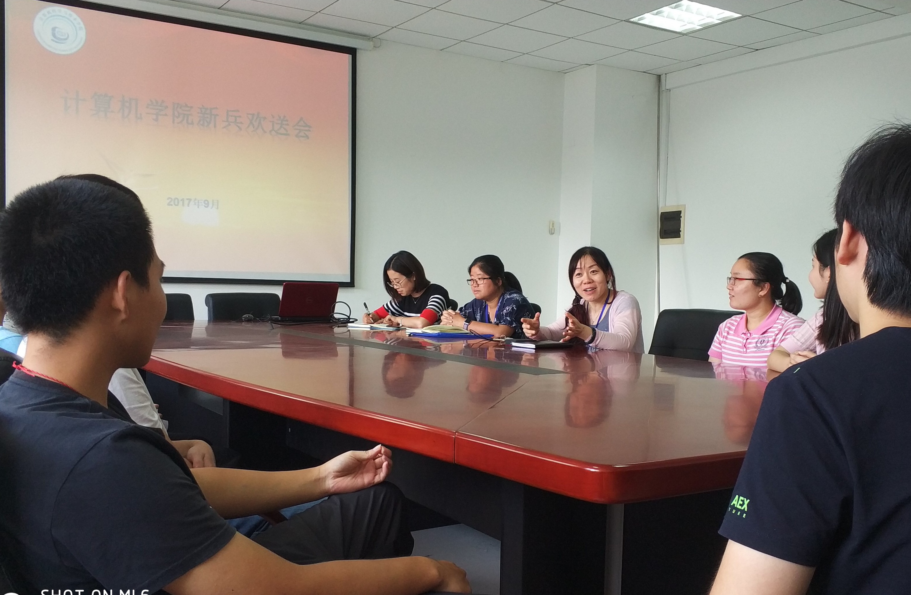 为欢送马亨通同学等八名大学生新兵参军入伍,9月13日下午,学院举行了2017年新兵欢送会。参会的有院党委书记费敏老师、院党委副书记余南飞老师、各年级辅导员老师以及来自新兵班级的学生代表。会议由学院征兵工作负责人、新生辅导员朱佳老师主持。